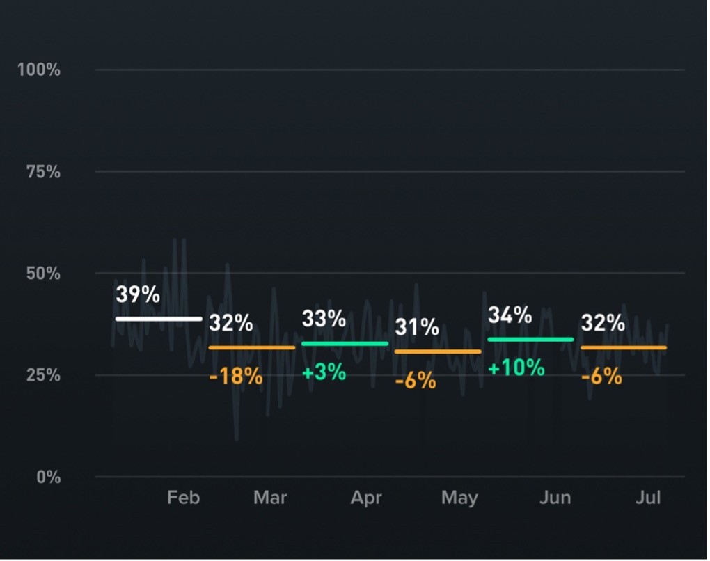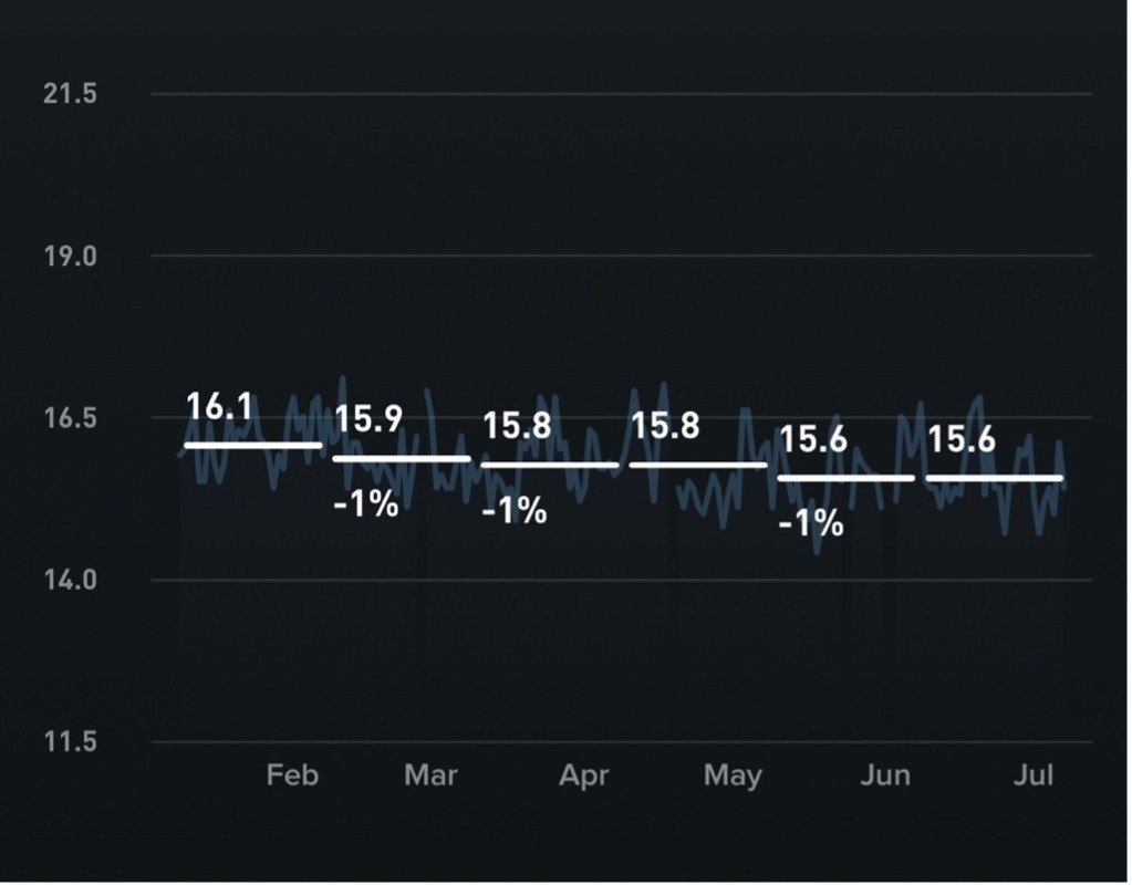 a. Why is Mr. A’s HRV dropping in the current month? Is his sleep performance impacting his HRV? How is this impact contributing to his anxiety level in his daily life?Continuous refinement of insights based on new data.