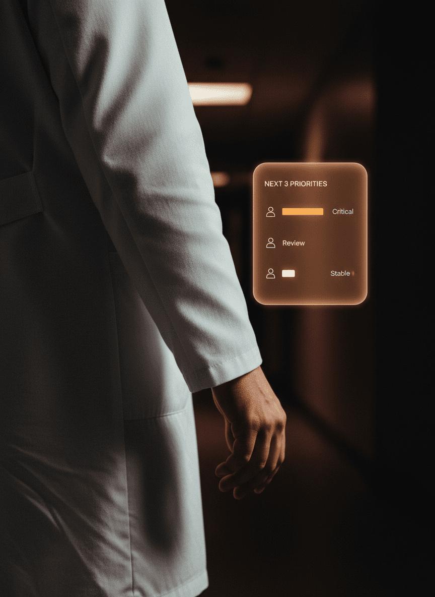 Delivers contextual signals and trends designed to support—not replace—clinical judgment, avoiding black-box outputs in favour of interpretable, actionable insight.